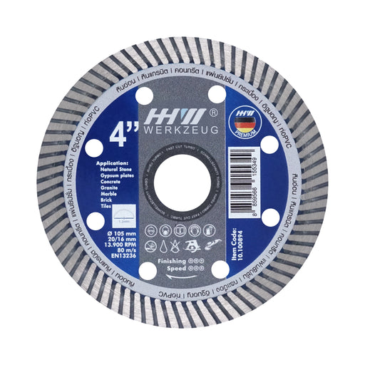 View full detailsHHW ใบตัดเพชรเทอร์โบ ฟาสท์คัท 4นิ้ว Diamond cutting discs fast cut 4” 10.100894